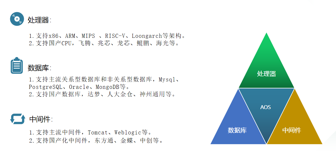 国产化:基于原有CPU(Inter处理器)服务器,搭配国产操作系统实现基础软件层的自主可控;